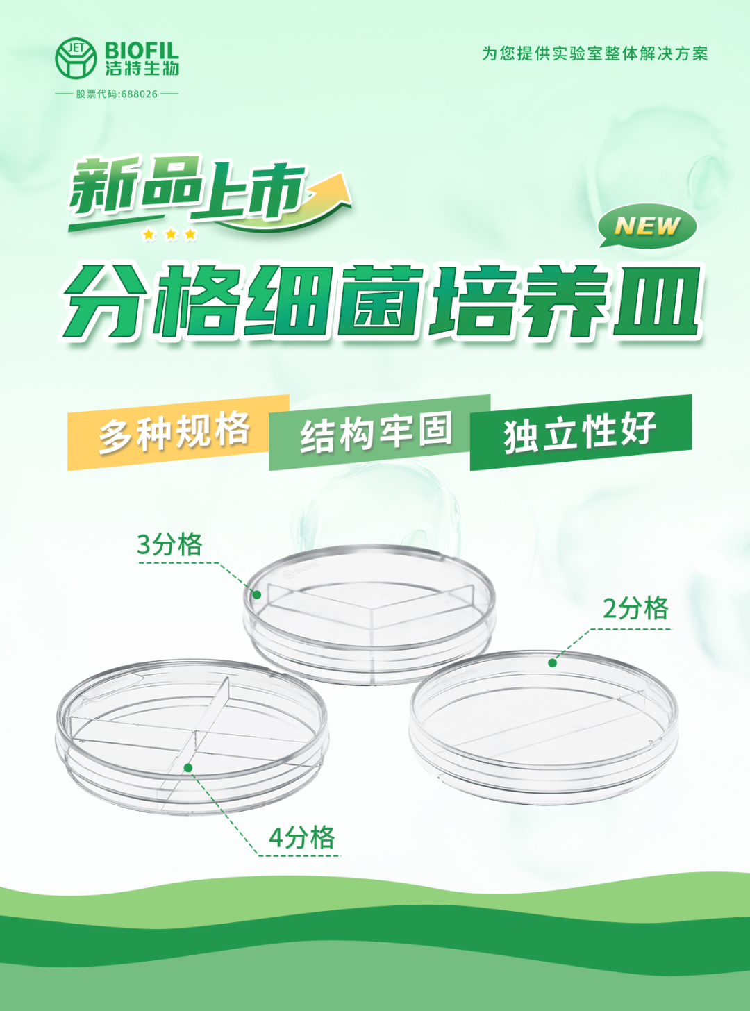 潔特生物分格細(xì)菌培養(yǎng)皿上新啦!